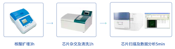 抗栓治疗用药相关6个基因位点多态性检测试剂盒(微阵列芯片法)采用多重等位基因序列特异性PCR结合通用微阵列芯片(Allele-Specific PCR-based Universal Array,ASPUA)方法,对人基因组DNA中VKORC1、CYP2C9、CYP4F2、GGCX、CYP2C19和CYP3A4这6个基因的9个多态性位点进行检测。
