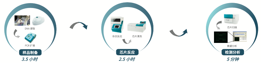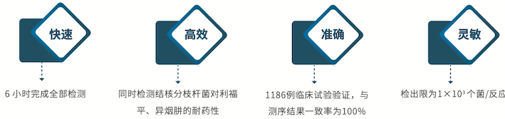 采用基因芯片检测技术,快速对两种主要的一线抗结核药物利福平和异烟肼的耐药情况进行评估,进而实现对耐多药结 核病的快速诊断。该试剂盒是国内第一个取得CFDA 认证的耐多药结核病快速诊断产品。