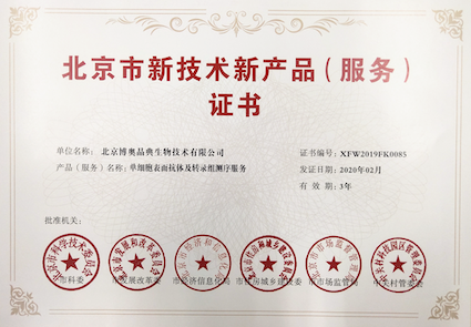 “北京市新技术新产品(服务)认定”旨在有助于高新技术产业的开展,作为北京市新技术新产品,应拥有自主知识产权,并具有技术先进性和创新性。本次喜获“单细胞表面抗体及转录组测序服务”荣誉证书是各委员会对博奥晶典单细胞产品及服务创新能力的肯定,同时体现了博奥晶典单细胞产品服务在行业内的技术优势。