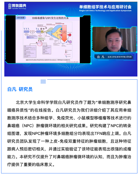 2020年10月31日,由生物芯片北京国家工程研究中心、北京博奥晶典生物技术有限公司主办的“单细胞组学技术与应用研讨会”在北京成功举办。在疫情防控新形势下,本次大会以线下现场会议与线上远程会议相结合的形式举办,打破时空及地域限制,以更宽更广的研讨平台,让全国各地的单细胞领域专家学者共同见证本次大会的精彩瞬间。本次会议线上累计直播浏览量超6000人次,线下100余位嘉宾出席。会议特采用专业级演播大厅进行直播报告,顺利获得5G+4K+AR的创新技术和高品质传输进行全程实时直播,为现场及远程参会代表带来极好的视听体验。