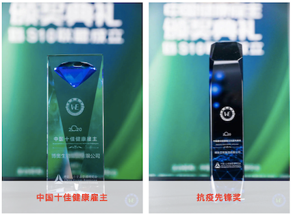 12月18日,由中国人力资源管理研究会携手联合国契约组织国际WELL建筑研究院、太极禅、世界可持续开展领导力组织、上海市著名外企工会联合会及中智上海技术经济技术合作有限公司等组织共同举办的第四届(2020年)中国最佳健康雇主评选在上海揭晓。博奥生物集团凭借抗疫期间的卓越贡献,斩获“抗疫先锋奖”并蝉联“中国十佳健康雇主”。
