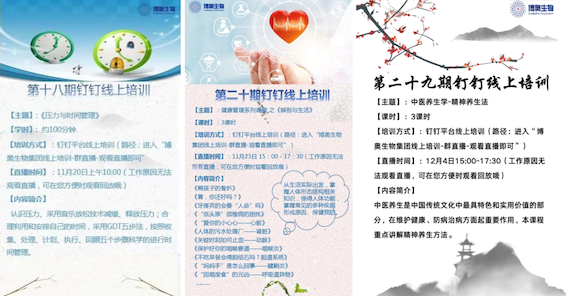 疫情期间,为确保员工身体健康、增强身体免疫力,博奥统一组织全体员工进行新冠核酸检测,并在食堂餐厅熬制中药代茶饮,清热解毒、芳香辟秽、利湿避瘟。除此之外还开拓了线上培训方式,借助直播平台为大家分享方方面面的健康管理知识。